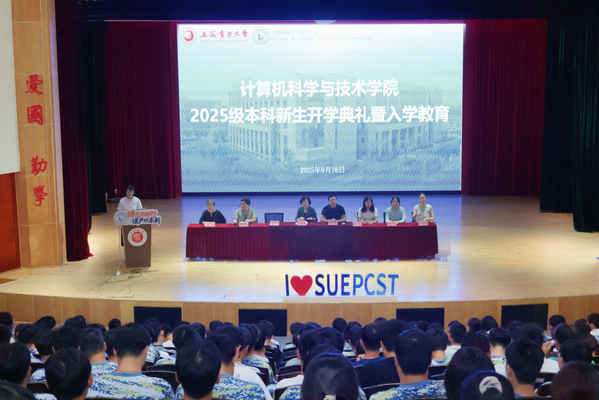 2025年9月16日,计算机学院2025级本科新生开学典礼暨入学教育在大学生活动中心演艺厅举行。学院党委书记魏建华、常务副院长张传林、党委副书记齐永晓、党委委员田秀霞、教学秘书徐曼、计算机系主任叶文珺、新生班主任代表及辅导员出席本次会议,学院2025级全体本科新生参会。